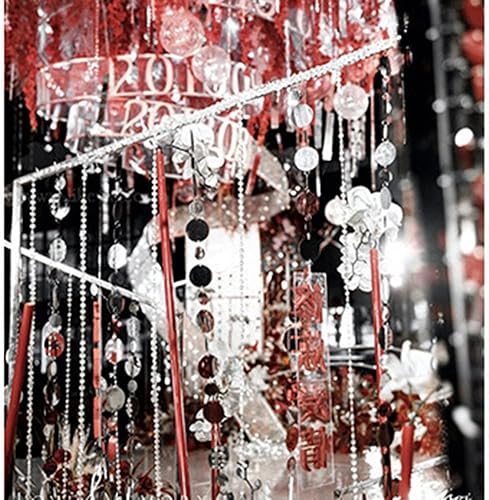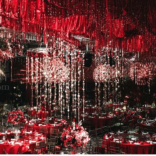 Yurosiay Lot de 5 guirlandes à suspendre à paillettes multicolores - 1 m - Cercles irisés - À suspendre - À suspendre - À pois - Rond - Pour mariage, anniversaire, fête - Rouge