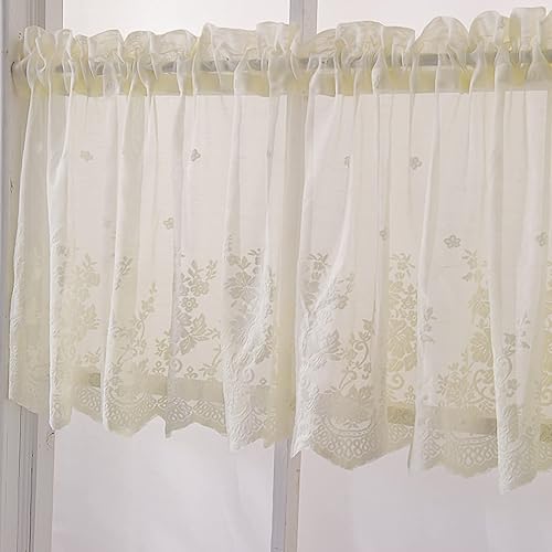 Rideaux de cuisine, cantonnières de cuisine pour fenêtres, rideaux de cuisine en polyester respirant porte fenêtre café cantonnières avec broderie(130 * 41cm-blanche)