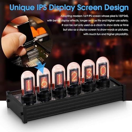 Ref Nixie Horloge numérique moderne à tube IPS, grand écran de décoration DIY