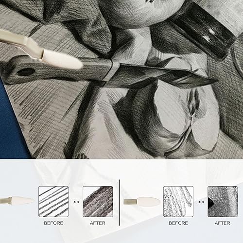 EUPSIIU 44 Pièces Estompeur Dessin Materiel, L'essuyeur De Croquis, Materiel Dessin 40 Têtes D'éponge, Matériaux de Dessin et de Peinture, Pour Passionnés et Débutants en Peinture