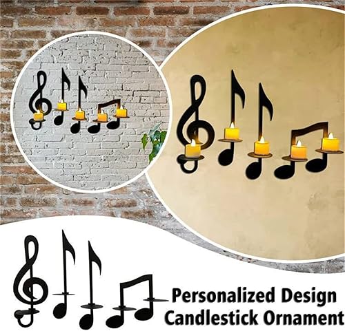 Note de Musique Noire Applique Murale Clé de Sol Décoration Murale Art Vintage Bougeoirs Style Note de Musique Suspendus Panneaux Muraux Thème Musique Décorations Murales