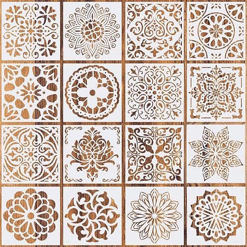 16 Pièces Plastique Modèle de Peinture Créatif, Pochoirs de Peinture Mandala, pochoirs en Plastique pour Enfants, 16 Formes, Accessoires de Peinture pour Bricolage, Scrapbooking