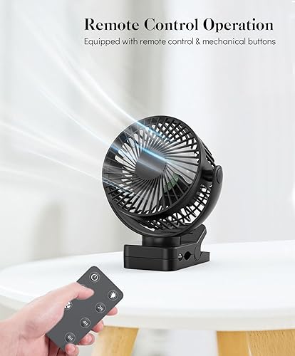 Multper Ventilateur de Camping 10000mAh, Ventilateur Portable Rechargeable 4 Vitesses, Ventilateur USB Silencieux avec Lumière LED, Télécommande et Crochet, Ventilateur de Bureau pour Maison Camping