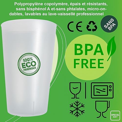 SPECIAL-DAY gobelet plastique dur reutilisable 30cl / 60cl rigide- Lot de 100,50,25 verres en Polypropylène dur - verre Couleur Givrée fabriqué en France (30cl, 25, unité)