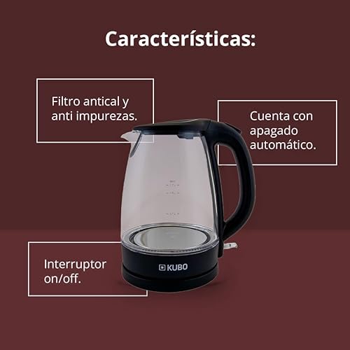 Bouilloire électrique - Filtre anticalcaire - Indicateur niveau d'eau - Puissance 2200 W - Capacité : 1,7 L - Kubo