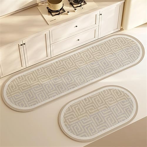Highdi Ovale Tapis Cuisine Absorbant Diatomite, Tapis Cuisine Devant Evier Séchage Rapide Antidérapant, Mat de Sol Résistants aux Taches Lavable pour Salon Couloir Bain (Beige,50x150cm)