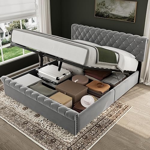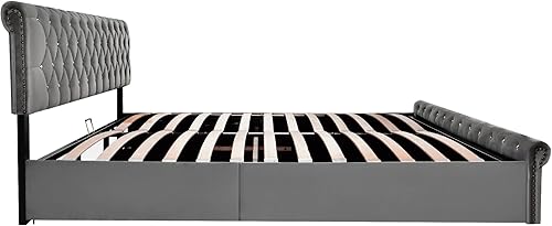 Lit 90x200 avec Sommier , Lit Coffre 90x200 avec Rangement ettête de lit réglable en hauteur, Lit Simple avec à Lattes Lit, Lit Rembourré Cadre de lit 160x200, Velours Snowflake Gris(sans Matelas)