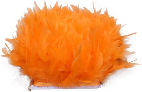 URFEDA Ruban Plume 2m 13-18 Cm Frange en Plumes de Coq Ruban en Satin Dentelle de Plumes Multicolores DIY Jupe Vêtements Costume Décoration, Artisanat Accessoires de Couture Orange