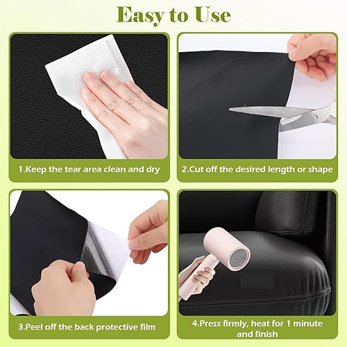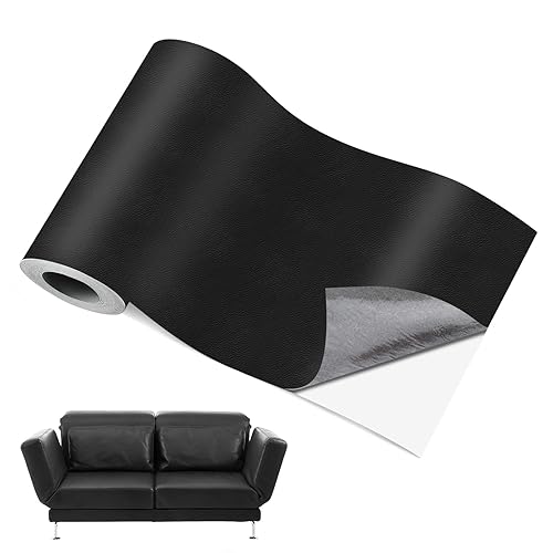VMUTGA Patch de Réparation en Cuir, 20 x 150cm Simili Cuir Autocollant Noir Patch Cuir Auto-adhésif Rénovation Rouleau Adhesif Cuir Kit Reparation Cuir pour Canapé Sièges de Voiture Meubles Vestes