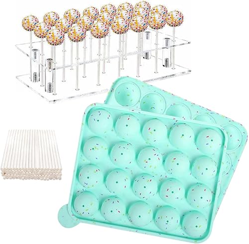 Erlsig Moules à cake pop, 100 bâtonnets en silicone avec support pour sucettes, bonbons, gumdrop et gelée Bleu glacé