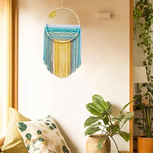 Tenture Murale en Macramé, Décoration Murale Tissée à La Main, Attrape-Rêves, Tenture Murale en Macramé Motif Coucher de Soleil, pour Bureau, Chambre à Coucher, Appartement, Salon, Chambre d'Enfant