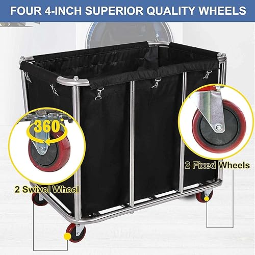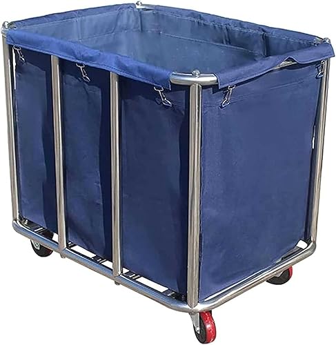Grand chariot à linge, commercial, en acier inoxydable, avec roulettes, pour la maison, l'hôtel, chambre à linge, 400 l, capacité de charge 120 kg, 90 x 65 x 80 cm (bleu)
