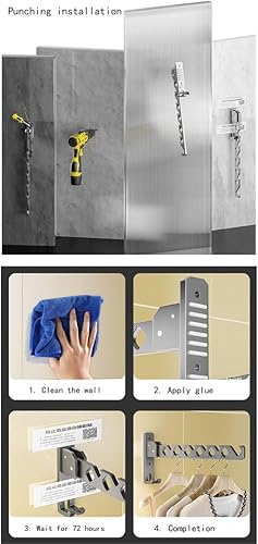 Baitang Cintre pliable, crochet à vêtements, cintre en alliage d'aluminium, crochet, cintre mural, utilisé pour accrocher des vêtements dans les balcons, les salles de bains, les couloirs(blanc)