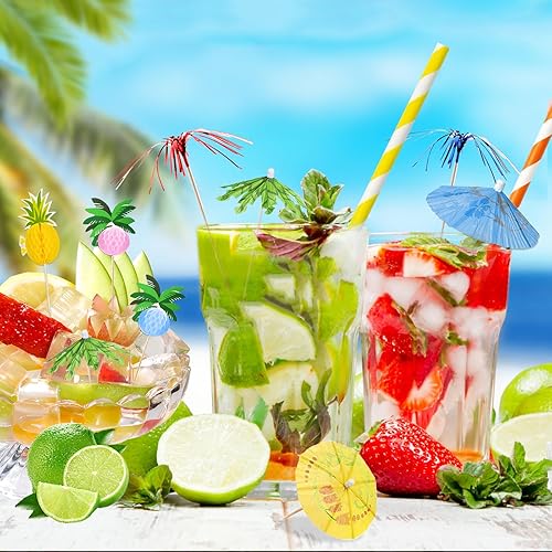 Lot de 140 pailles réutilisables pour cocktail, feux d'artifice, accessoires de cocktail, accessoires de décoration pour fêtes d'été, mariages, bars et fêtes sur la plage
