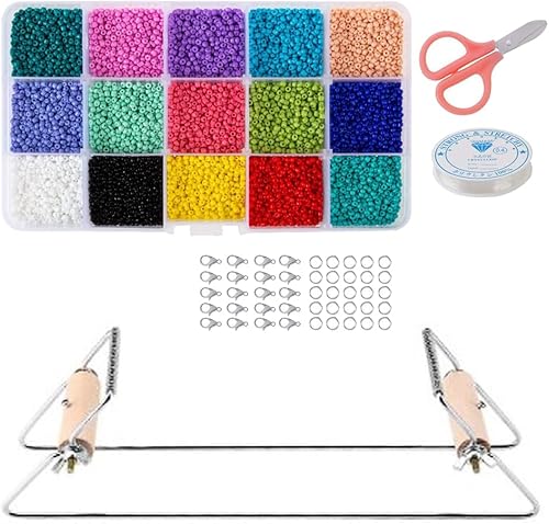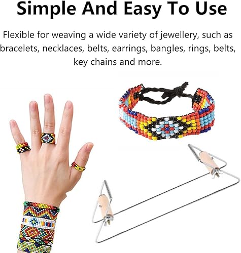 Lot de 15 métiers à tisser de perles - Avec perles de couleurs - Kit de métier à tisser - Machine à tricoter - Pour le bricolage, les bijoux faits à la main - Argenté