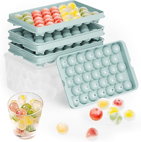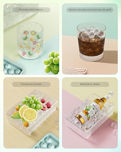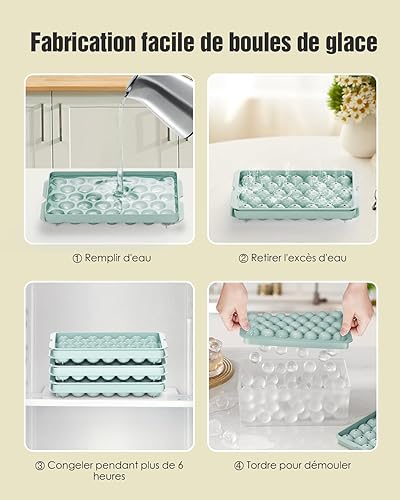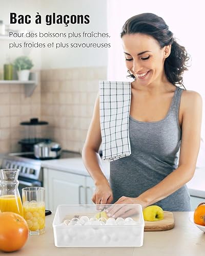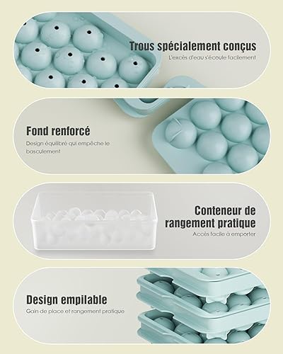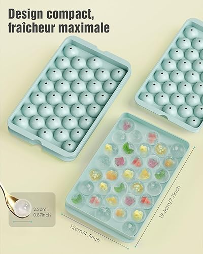 Bacs à Glaçons Ronds avec Couvercle et Boîte - Lot de 3 Bacs Empilables pour Petites Boules Glace, 99 Glaçons Ronds pour Rafraîchir Whisky, Cocktails, Café - Bac a Glacon Sphériques Démoulage Facile