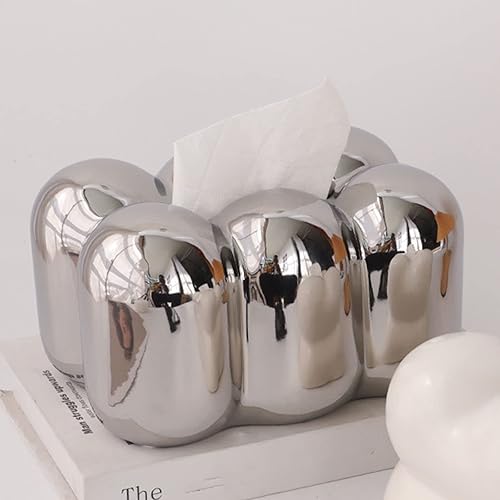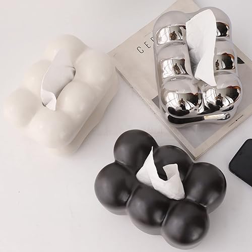 Boîte à mouchoirs moderne en céramique avec tiroir pour salon et salle à manger Argenté/blanc/noir