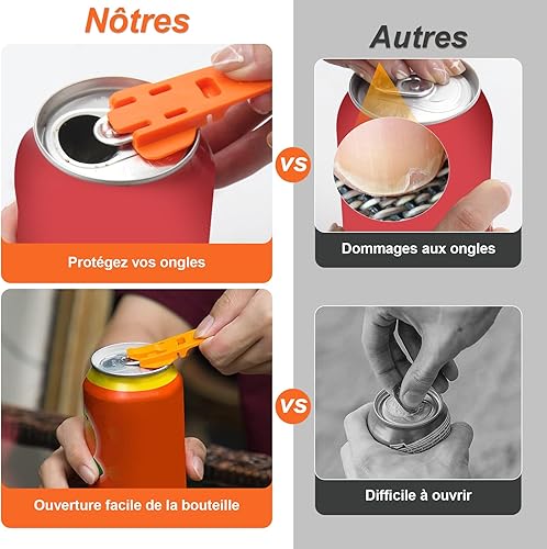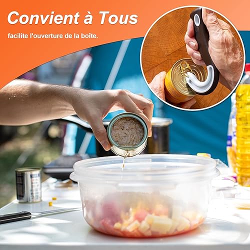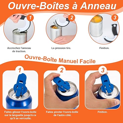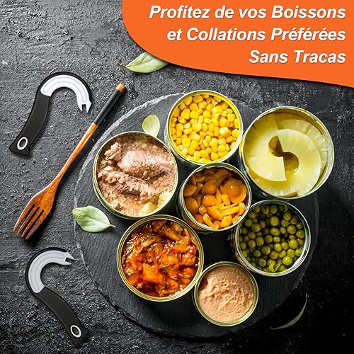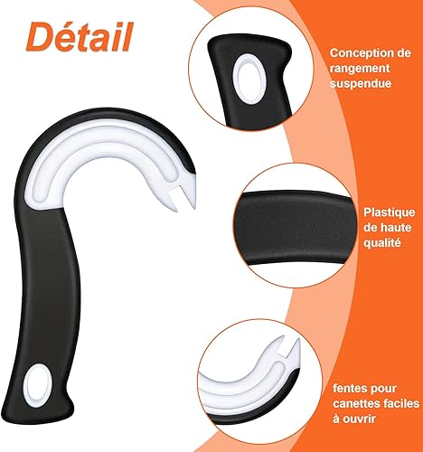 BORISCA 2 PCS Ouvre-Boîtes à Crochet en Forme de J, Ouvre Boite Manuel avec 6 Ouvre Bouteille Plastique et Sac de Rangement, Gadget Cuisine Pratique Ouvre Bocal pour Boîtes avec Anneaux de Fermeture