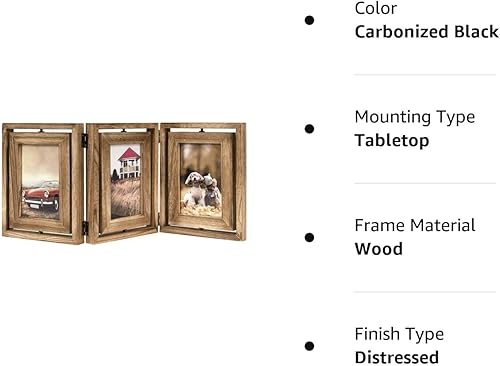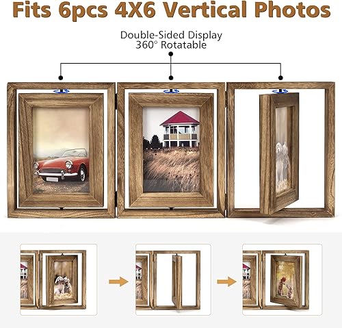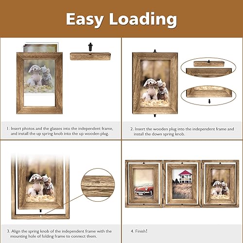 Emfogoo 10x15 Cadre Photo en Bois Rustique Pliant à Charnière Triple Cadres Photo Collage, Affichage Double Face Rotatif Haute Définition Cadre Photo en Verre pour Table de Maison (Noir carbonisé)