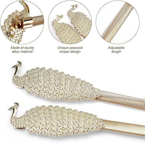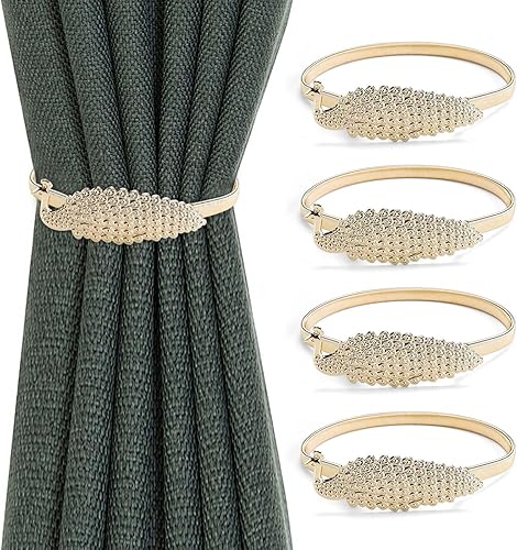 SRJQXH Attache Rideau, 4 Pièces Matériau en Alliage Conception de Ressort Embrasse pour Rideaux, Forme de Paon Attache Rideaux Convient pour Chambre à Coucher, Salon (Or)