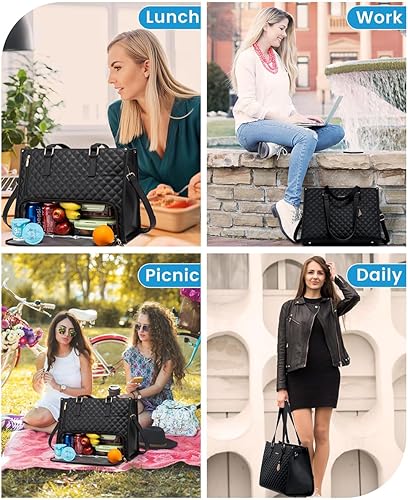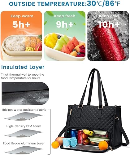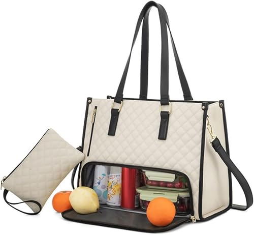 Sac fourre-tout 2 en 1, sac à déjeuner combiné, sac fourre-tout étanche de 15,6 pouces avec compartiment à déjeuner isotherme, sac à main d'ordinateur de grande capacité pour femme, sac à main pour