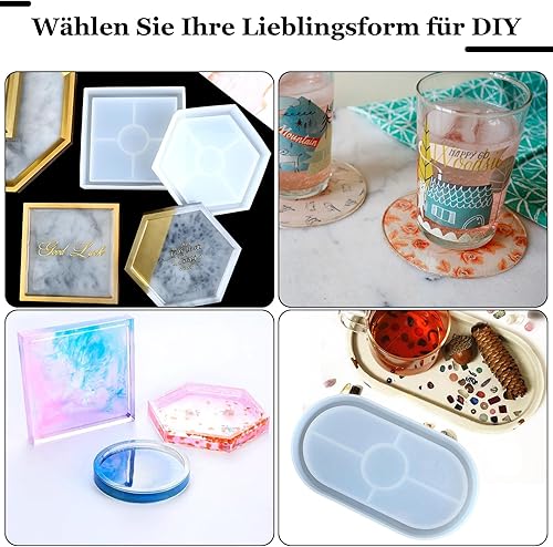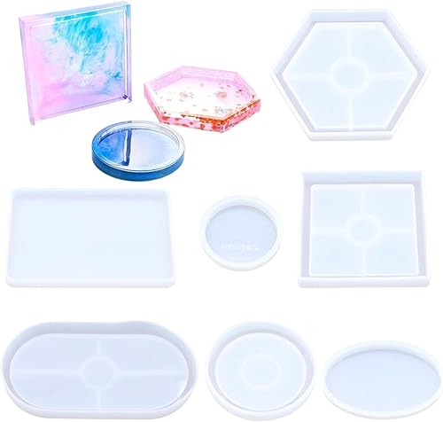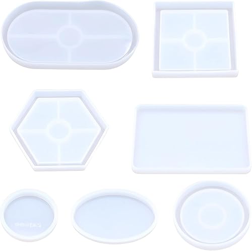 Lot de 7 moules en silicone, dessous de verre, moules en silicone pour le béton, la décoration de la maison, les plateaux de cuisine à faire soi-même