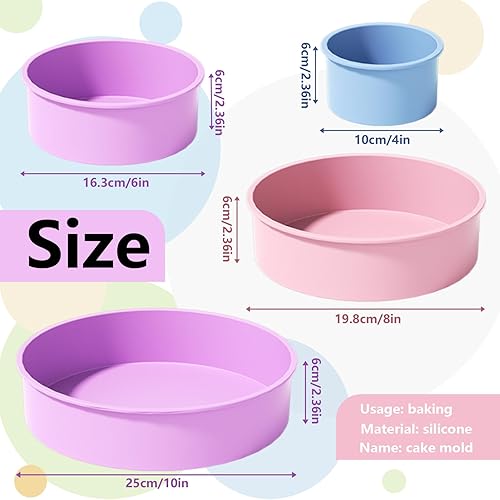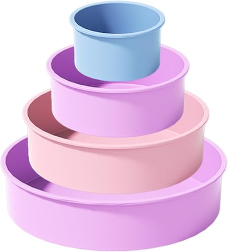 LURNODY Set de 4 Moules à Gâteaux Rond, Moule Gateau Silicone, Moule Silicone Gateau, Moule à Cake Silicone Moule Silicone Patisserie pour Gateau, Mousse, le Dessert