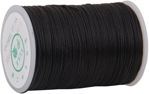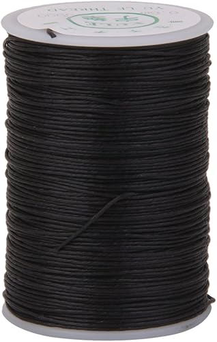 Tiuimk Fil de lin ciré à coudre à la main 0,6 mm pour travaux manuels en cuir – 100 m de cordon ciré noir