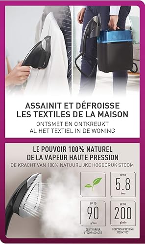 Calor Cube Défroisseur Purificateur haute pression, Vapeur assainissante, Défroissage, Repassage, Mobile, Pression 5,8 bars, Débit vapeur 90g/min, Boost Vapeur, Fabriqué en France UT2020C0