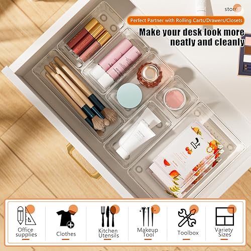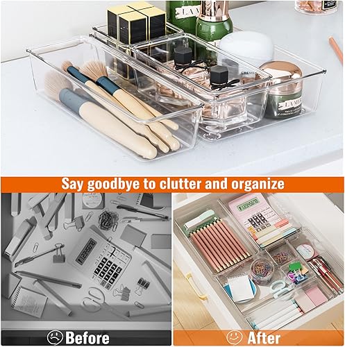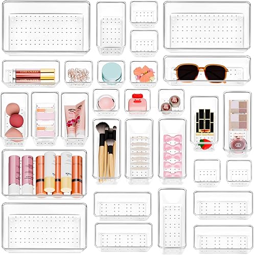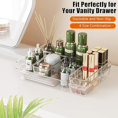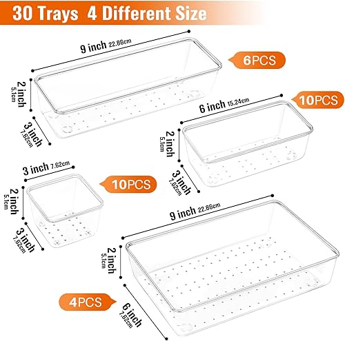 YFXCVSL 30 pièces Rangement Maquillage,4 Sizes Rangement Tiroir,Organisateur Tiroir,Rangement Tiroir Bureau(Transparent)