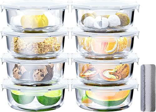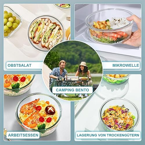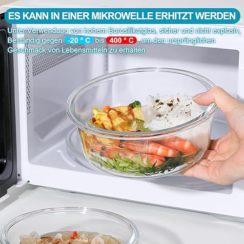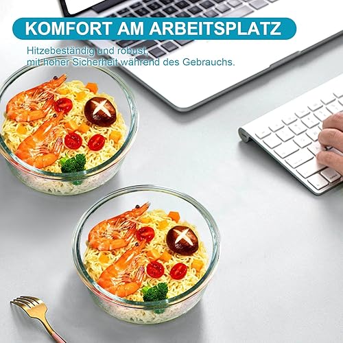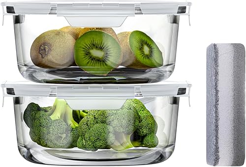 Bstask Lot de 2 boîtes alimentaires rondes en verre avec couvercles, boîtes à repas scellées, boîtes à déjeuner en verre avec couvercle, boîtes de conservation des aliments (660 ml), passent au