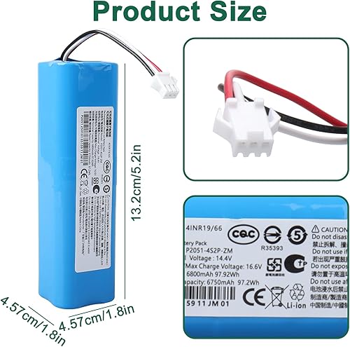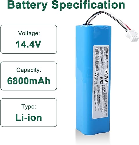 6800mAh 14.4V Li-ION Batterie de Rechange Compatible avec Proscenic M7 Pro, M8 Pro, M7 Max, LDS M7 Pro, U6, Compatibles avec Lenovo LR1 Xiaomi S9 Viomi D800 UONI V980 Max V980 Plus Aspirateur