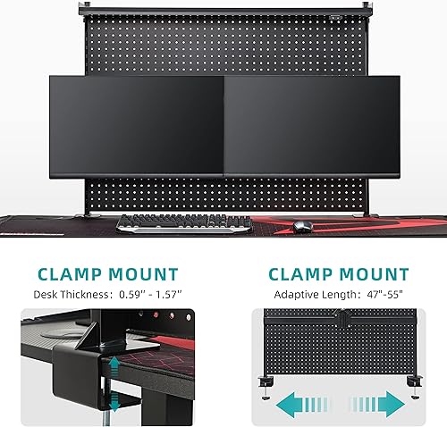 EUREKA ERGONOMIC Desk Pegboard,Panneau perforé en Acier avec Double Support pour écran,Accessoires de Bureau d'ordinateur pour Bureau, 4 Accessoires à Suspendre modulaire,110 × 29 × 86,8 cm, Noir