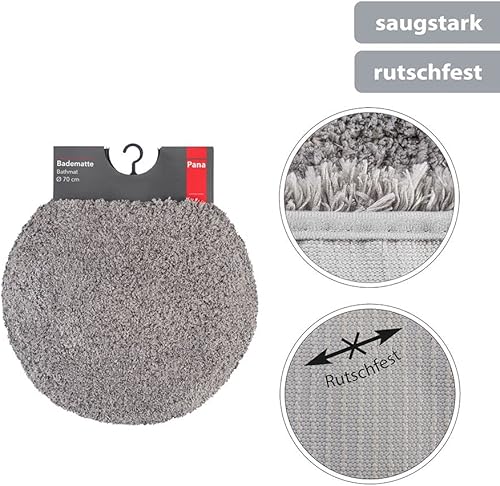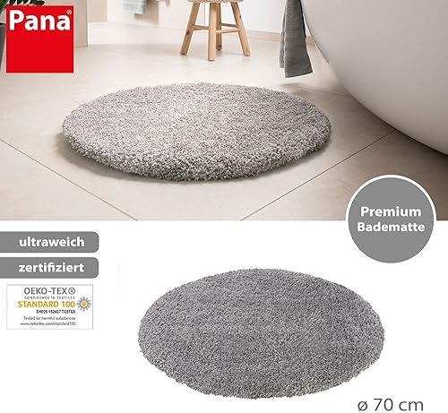 PANA Vienna Premium Tapis de Bain (Rond 70cm) • Tapis de Bain à Poils Longs • Tapis de Douche • Tapis WC • Antidérapant & Absorbant • sans découpe WC • Couleur : Baie
