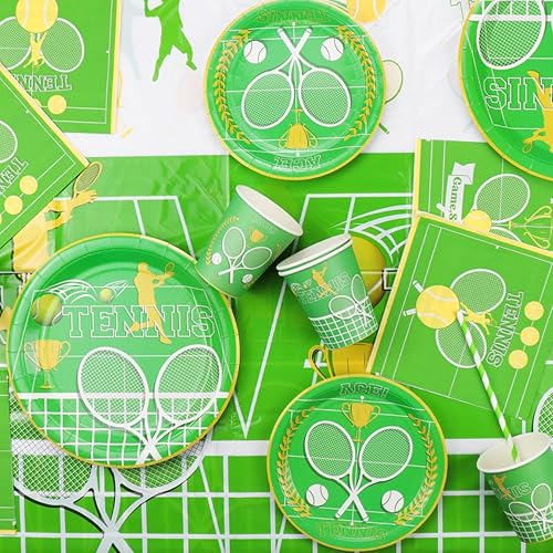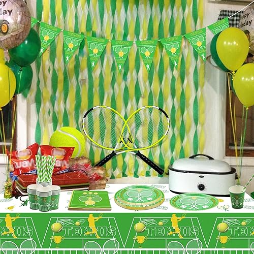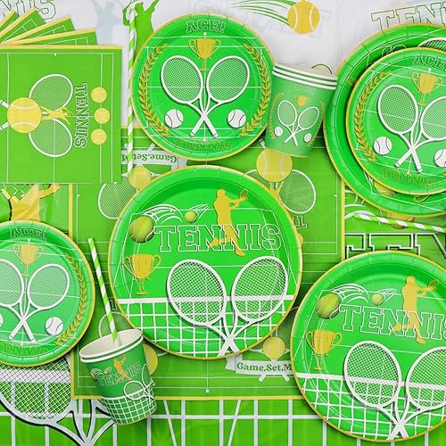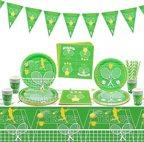 Décorations pour une fête de tennis, comprenant drapeau de tennis, nappe de tennis, assiettes en papier, gobelets, serviettes pour les fournitures de fête d'anniversaire pour enfants, pour 20 invités
