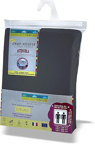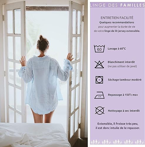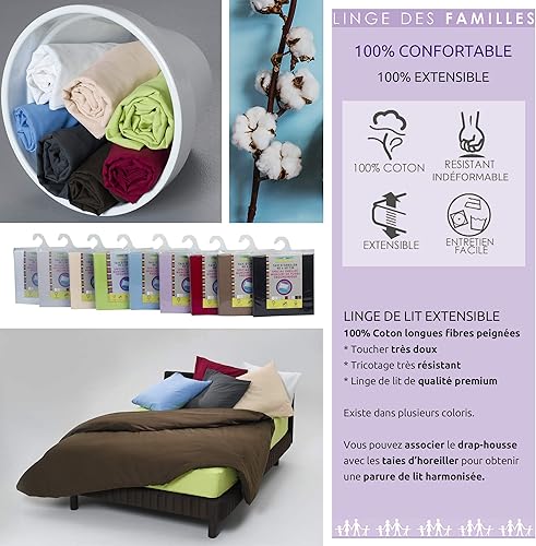 Linge des Familles - Taie d'oreiller Extensible 40x60 cm - Housse pour Oreiller Mémoire de Forme - Jersey 100% Coton Peigné - Argent - Label Oeko-TEX® Standard 100 - Made in Europe