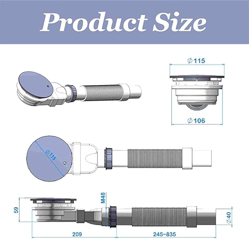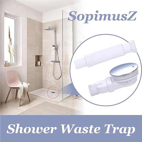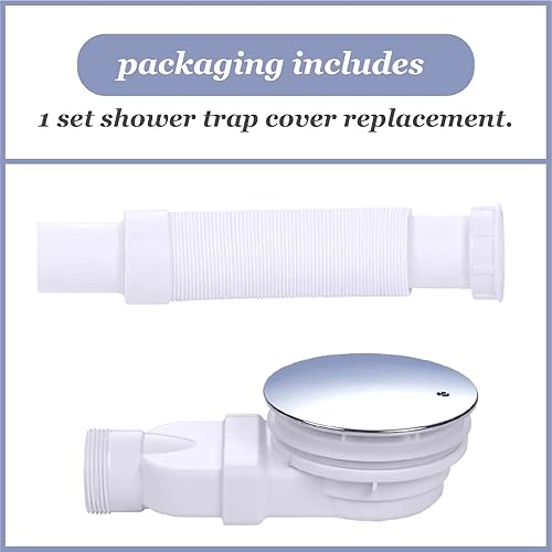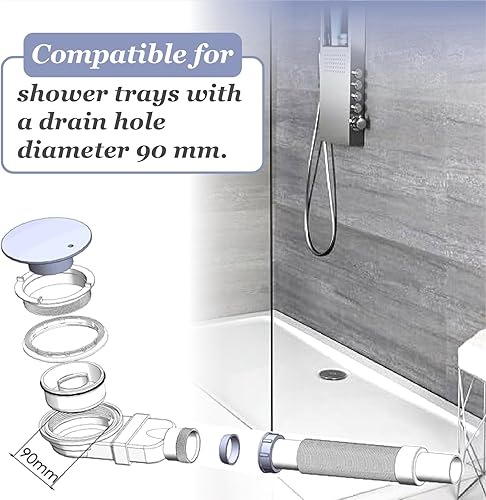 Bonde de douche SopimusZ extra plate de 90 mm pour receveur de douche, siphon avec système anti-odeurs, tamis à cheveux, tuyau flexible, couvercle chromé