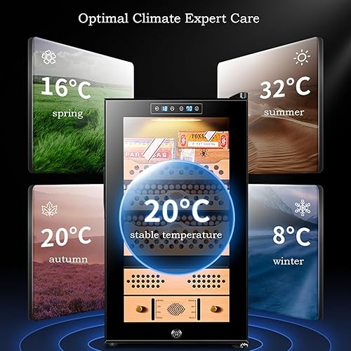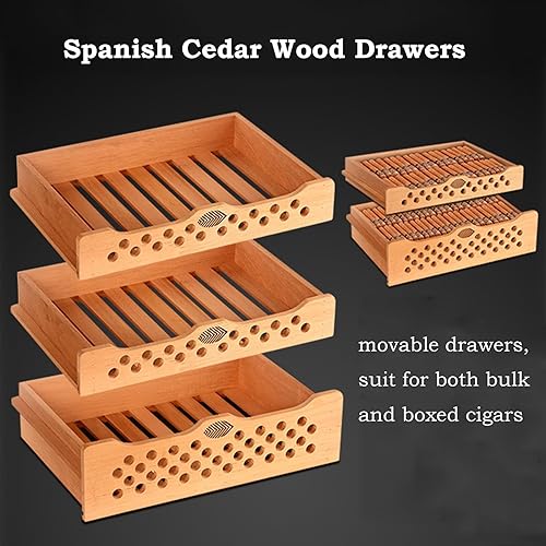 Cave à cigares électrique 70 L avec contrôle de l'humidité de refroidissement et de chauffage Cave à cigares électrique silencieuse for 400 cigares Cave à cigares avec tiroirs en bois de cèdre espagno