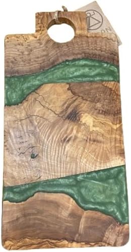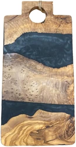 Didon Wood Planche à Découper en Bois d'Olivier avec Incrustation de Résine, 30 x 15 cm, Motif bleu, violet, vert, noir Artisanale (Noir)