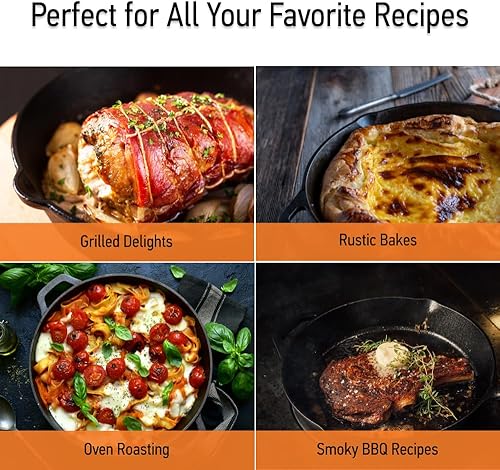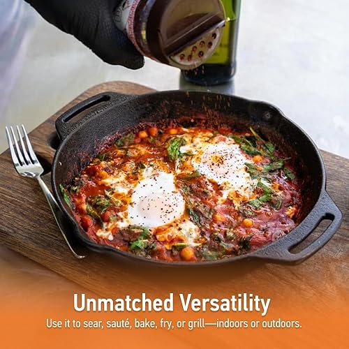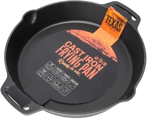 TEXAS CLUB Cast Iron Frying Pan Large 25 cm – Poignée en métal pour barbecue et barbecue