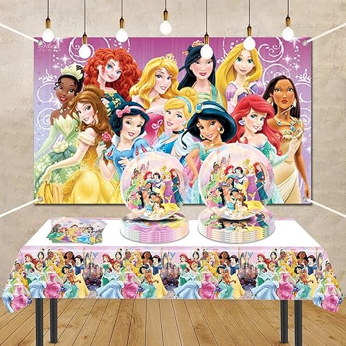 Zempertoopa - Vaisselle princesse, rose et multicolore, 20 pièces, pour 10 invités, motif princesse, qualité supérieure, durable, lavage à la main, décoration d'anniversaire