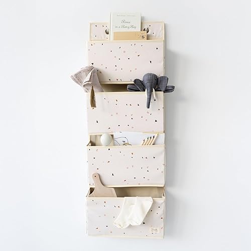 3 Sprouts - Étagère Derrière Porte - Rangement Suspendu Tissu - Organisateur de Porte - Étagère à Suspendre - Rangement Porte à Suspendre - Idéal Chambre d'Enfant, Chambre - Terrazzo - Crème