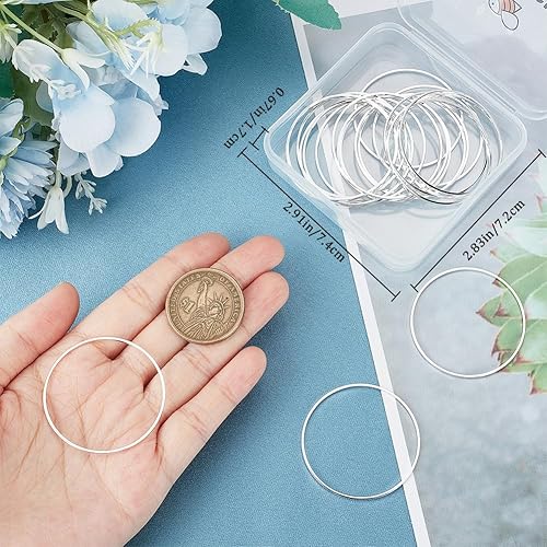 Beebeecraft 1 boîte de 20 Anneaux de Liaison de 40 mm Plaqué Argent Sterling Lisse à Boucle Unique Cadres Circulaires Porte-Clés Maillons Fermés Anneaux de Connecteur pour Bracelet Collier