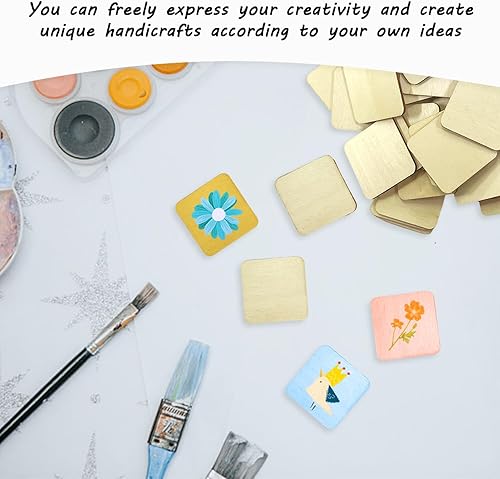 FDGGT 60 Pièces De Copeaux De Bois Carrés, Peinture De Planches De Bois, Artisanat en Bois De Bricolage, Gros Copeaux De Bois De 4 X 4 Cm, Décoration, Copeaux De Bois Artisanaux