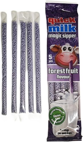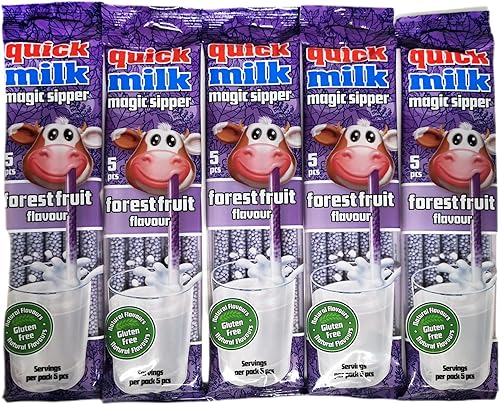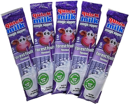 Quick Milk Forest Fruit Lot de 5 paquets de 5 pailles pour lait aromatisé aux fruits des bois (25 pailles)