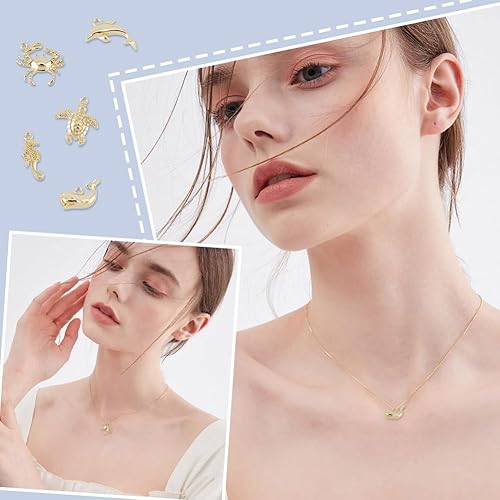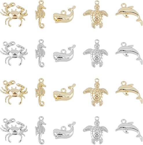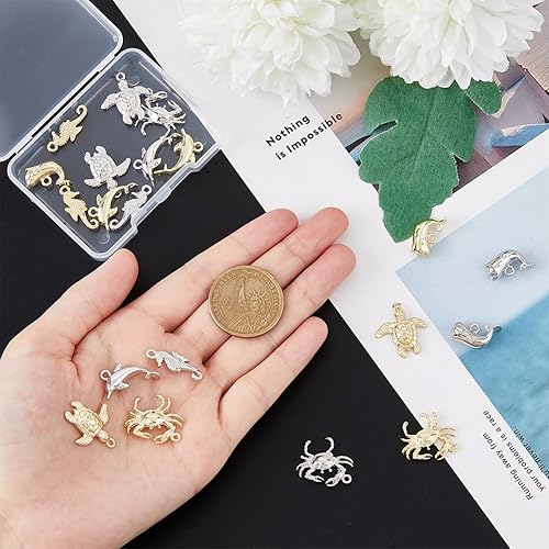 SUPERFINDINGS 20 Pcs 10 Style Rack Placage Alliage Charmes Animaux Marins Pendentifs Crabe Cheval de Mer Baleine Tortue de Mer Dauphin Charmes Platine Or Alliage Pendentifs Trou 1.5mm