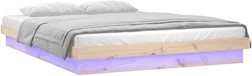 Festnight lit LED 200 x 200 avec sommier Cadre de lit 200 x 200 Sommier 200 x 200 Lit Double avec à Lattes Lit 2 Personnes Lit Adulte Cadre de lit en Bois-Naturel-200 x 200 cm