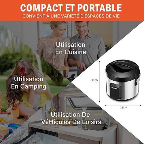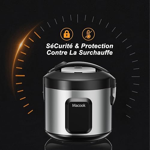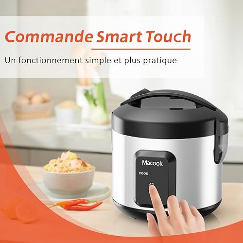 Macook Cuiseur De Riz (5 tasses de riz cru, 1 L), 400W Automatique Cuiseurs à Riz, Cuiseur Vapeur, Cuve Antiadhésive, Cuisson Sans Surveillance, Maintien Au Chaud, Panier Vapeur, pour 1 à 5 Personnes