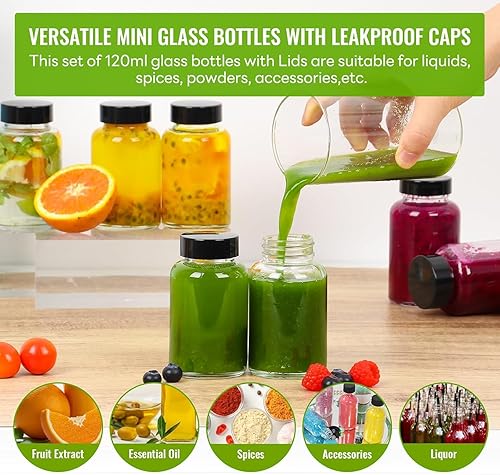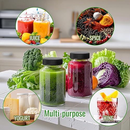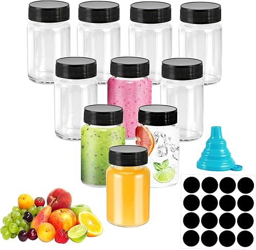 Tapvai 10 Pièces 60ml Mini Bouteille Verre, Petite Bouteille Shot de Jus, Petite Bouteille en Verre Vide, Réutilisables Transparent Ginger Shot Bottle pour Jus, Lait, Miel, Confiture, Bonbons