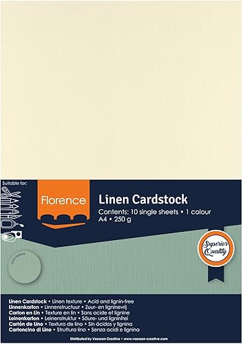 Florence Papier Cartonné en Lin Beige 250 g – Papier Scrapbooking A4 – Raffia – Papier Cartonné Couleur – Invitations Élégantes, Boîtes-Cadeaux et Projets Artistiques